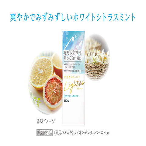 光発想で生まれた「Lightee[ライテイー]」は、ミクロクレンジング処方により光を反射する明るく白い歯にし、顔の印象まで明るく見せる美白ハミガキ●ミクロクレンジング処方で、歯の表面にできるミクロなキズに残った着色汚れまで徹底除去。●フッ素がエナメル質の修復を促進。ムシ歯を予防。●LSS(ラウロイルサルコシンナトリウム)配合で口臭を予防