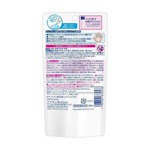 ライオン、キレイキレイ、きれいきれい、消毒、ジェル、ジェル携帯、ジェルプラス、ノンアルコール、ノンアルコール消毒、消毒携帯
