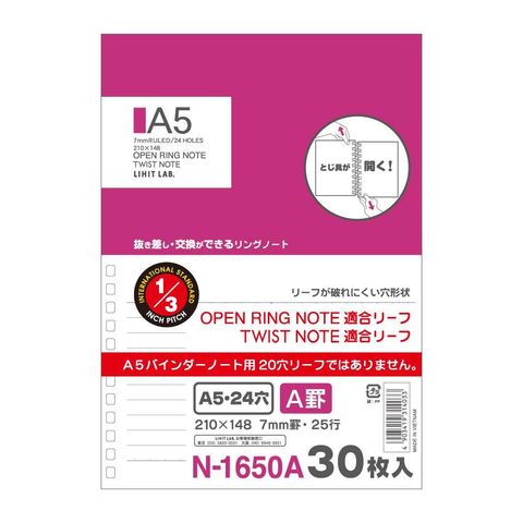 LIHIT LAB. オープンリングノート ツイストノート 適合リーフ 横罫A罫 A5 1組 30枚