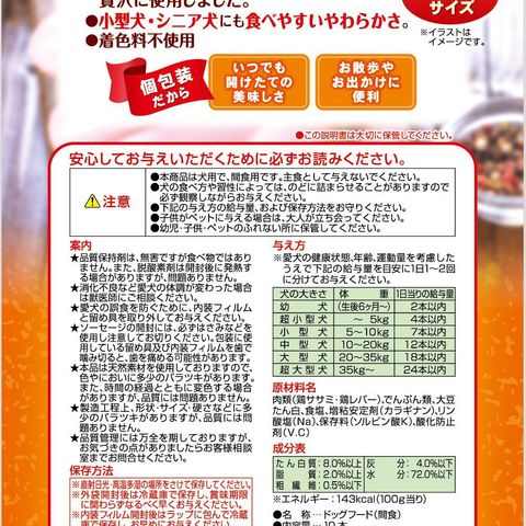 良質な鶏ササミを贅沢に使用したソーセージ!小型犬・シニア犬にも食べやすいやわらかさ、食べきりサイズに仕上げました。個包装だから、いつでも開けたての美味しさが楽しめて、お出かけやお散歩に便利です。着色料 不使用。