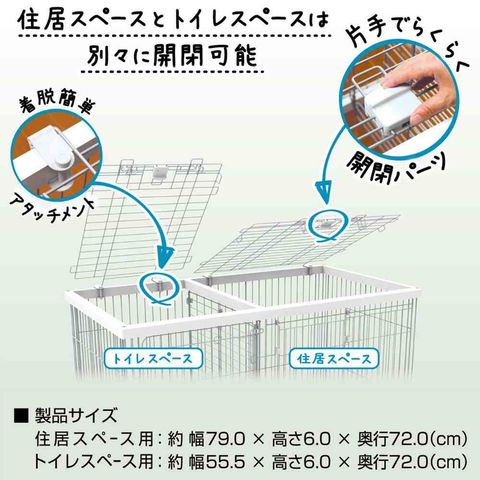 ・トイレスペース、住居スペースそれぞれが自由に開閉。