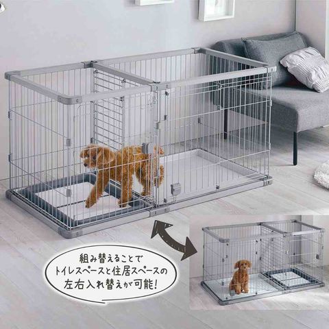 商品説明トイレと住居スペースを区切れるから、トイレの場所を覚えやすい!住居側は横スライドドアで開閉がスムーズ。トイレ側はドアが大きく開き、ワンちゃんの出入りやシーツ交換もラクラク!