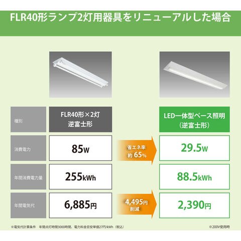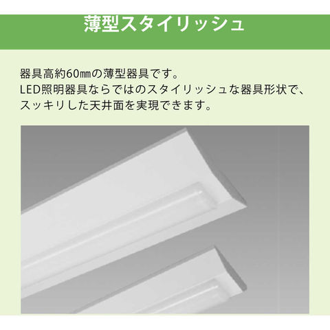 商品説明●FLR40形ランプ2灯用器具相当の明るさ明るい昼白色です。●天井ボルトの出シロ長は、最長35mmまで切断することなく施工可能です。●ライトユニット+本体 同梱包品で、荷運びも楽で環境に優しい商品です。●明るさ(lm):4000●光源色:昼白色●幅(mm):150●長さ(mm):1250●高さ(mm):62●電源(V):100~242●消費電力(W):27●定格寿命(時間):40000●タイプ:逆富士形●電圧(V):AC100~242●消費効率(lm/W):148.1●ライトユニット同梱タイプ逆富士150mm幅LED一体型●光源色:昼白色●光源寿命:40000時間●天井直付●制御機能:壁スイッチ:点灯→消灯●光束維持率(%):85 質量2kg