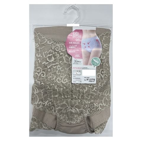 お尻の立体を計算したショーツ。肌に直接あたらないパワーネット内蔵で、しっかりお腹押え。綿混95%。デリケートなマチ部分は綿100%。ウエスト折返し。