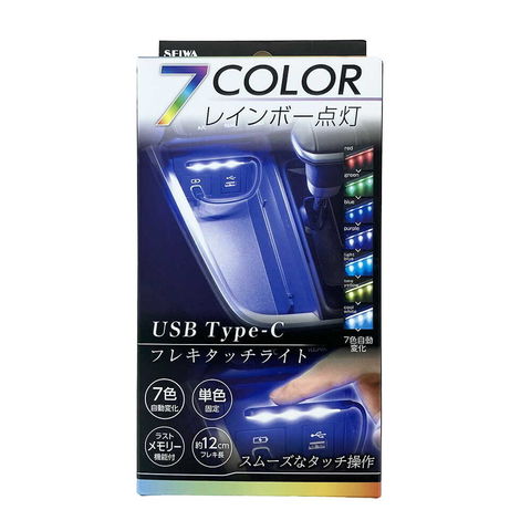 seiwa、F345、USB-C、フレキ、タッチ、ライト、USB-C専用、7色、LED、ブラック