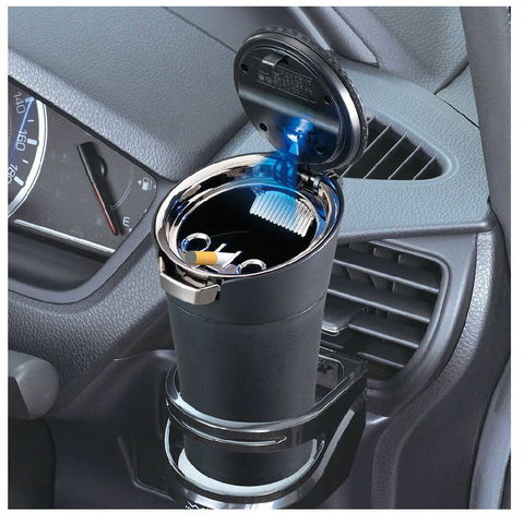 ●暗くなると点灯、明るくなると消灯するオートライト機能のブルーLED照明がついたソーラータイプの灰皿です。