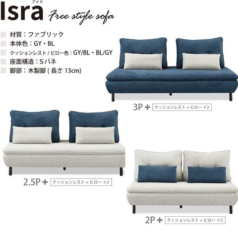 ソファー Isra 2P+背x2 BL、BL/GY 設置 メーカー直送▼返品・キャンセル不可【他商品との同時購入不可】