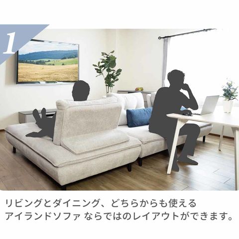 商品説明置き型クッションでレイアウト自由自在。アレンジ豊富なフリースタイル アイランドソファ。
