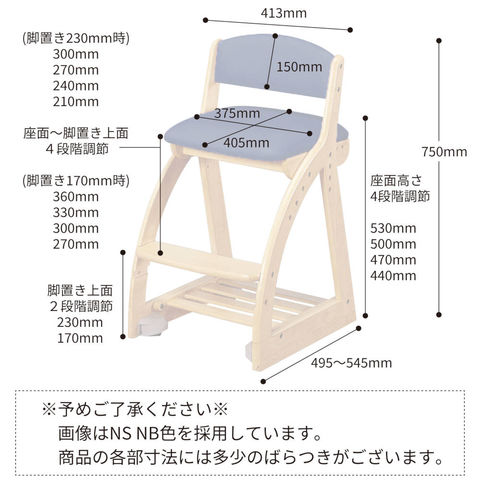 幅413×奥行495~545×高さ750mm 座面高/440・470・500・530mm