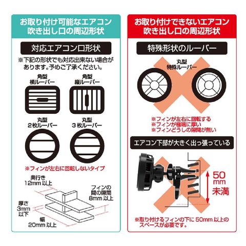 ●ねじ込み式のクリップでエアコンフィンにガッチリ固定。