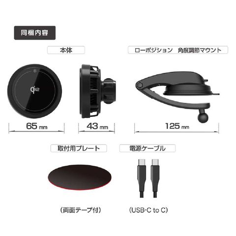 カーアクセサリー ワイヤレス充電器 マグネット 置き型 Qi2 冷却機能 吸盤取り付け