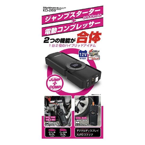 カシムラ 電動コンプレッサー付きジャンプスターター 8000mAh KD269