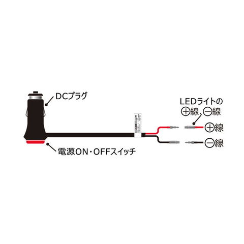 LEDワークライト用 DCプラグ配線キット。電源をON/OFFできるコントロールスイッチ付。12V/24V車対応。コード長3m。