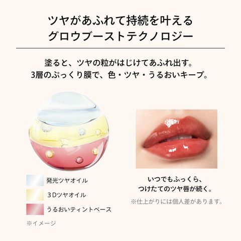 色だけじゃない。ツヤがあふれて長時間持続。リップグロウボム。