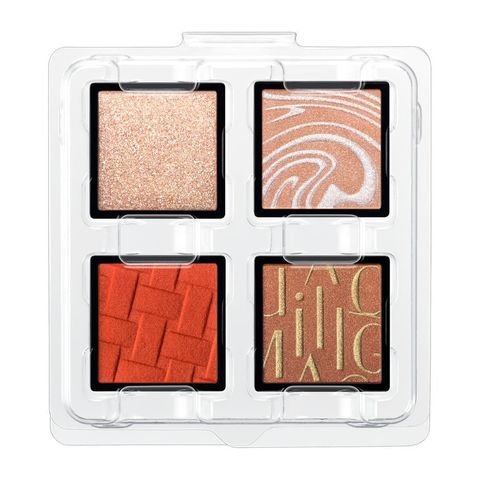 <カスタマイズケースへのセット方法> 本品の透明ケース内の中皿を1色ずつそっと取り外し、セットしてください。その際、中味を削らないようにご注意ください。 <おすすめのご使用法> ●指先またはお手持ちのチップにとってご使用ください。 (1)右上の色:アイホール全体に広げます。 (2)左下の色:広くぼかしたり、目尻にポイントでいれて、ニュアンスを演出します。 (3)右下の色:運命のブラウンカラーをまぶたの際に沿ってのせて、ぼかします。 (4)左上の色:アイホール中心、下まぶた、目頭などにのせて輝きをプラスします。