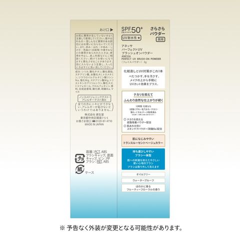 テカり、毛穴カバー、自然な仕上がり、資生堂アネッサ、パーフェクトUV、フェイスパウダー、日焼け止め、UVカット、メイク直し、ブラシ一体型、SPF50+PA++++、テカリ防止、透明感仕上げ、ウォータープルーフ、皮脂吸着パウダー、トランスルーセントベージュ、レフィル用、詰め替え、詰替え、詰替