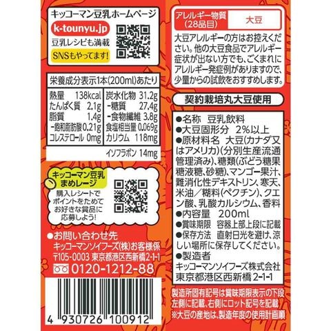 ◆キッコーマン 豆乳飲料 マンゴー 200ml