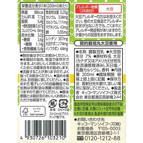 ◆キッコーマン 砂糖不使用 調製豆乳 200ml