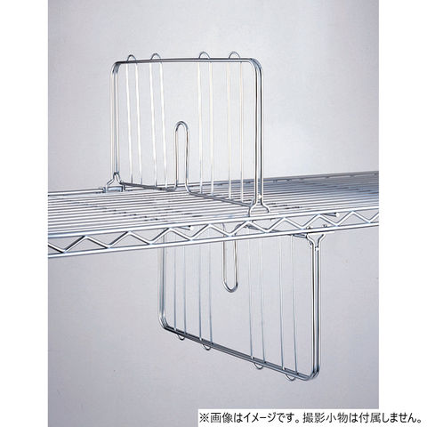 間仕切り収納に、小物の転倒防止に。小物の整理や転倒防止に便利なブックエンド型のパーツです。ワイヤーシェルフの表裏どちらにも取り付けられるので、載せる物の形、大きさに合わせてご活用ください。