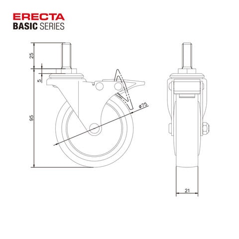 エレクター ベーシックシリーズ エラストマーキャスター ストッパー付75mm BDRS75 2個入