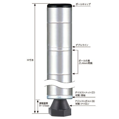 錆びに強く、キズがつきにくいポール。サビやキズに強いステンレス製:SUS430ステンレスを採用。エレクター甲府工場で製造され、組み立て時の精度の高さはスーパーシリーズに引けを取りません。ポストには組み立て時の目安として、8ピッチごとにダブルラインが付けられています。ホワイト・ブラックもタフな仕上げ:スチールにエポキシコーティング仕上げ(粉体塗装)を施し、確かな耐錆性を持ち合わせながら、マット仕上げに。ホワイトポールはキャップもホワイト色、ブラックポールはキャップをブラックに、見た目の統一感を演出。【仕様】外寸法:直径25.4mm●棚板の調整範囲/25.4mmごとに調整可能●機能/アジャスター機能(調整範囲:最大10mm)●互換性:スーパーシリーズ等、他のシリーズとの互換性はありません。