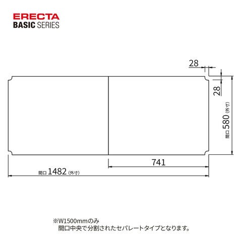 ※アクリル板は必ずワイヤーシェルフの上に載せてご使用ください。その場合、耐荷重(135kg/棚1段)は変わりません。※ディバイダーとの併用はできません。※ゴム・樹脂製品を載せて長期ご使用になる場合は、変色することがあります。※W1500mm のみ間口中央で分割された2 枚入りとなります。