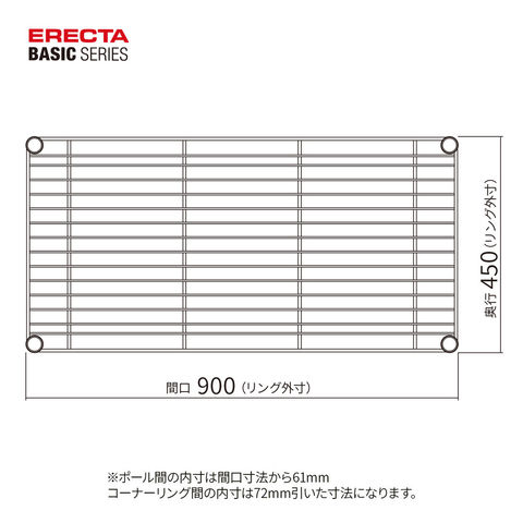 エレクター ベーシックシリーズ ワイヤーシェルフ W900xD450mm クローム B1836C1