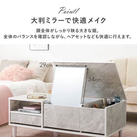 商品説明天板を開ければドレッサーとして使えるセンターテーブル。幅95cm