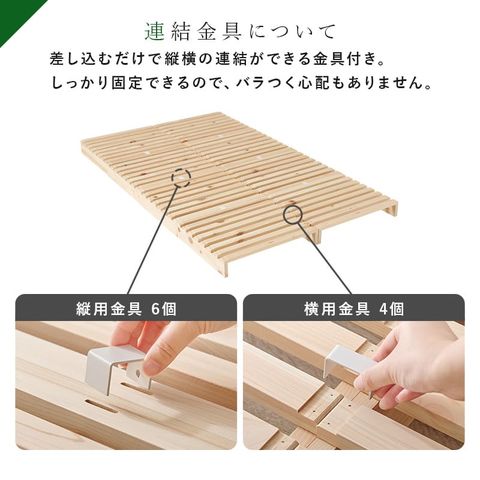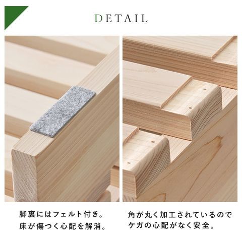商品説明檜(ひのき)の香りや風合いを感じられるすのこベッド。パレット状のすのこ板を並べるだけの簡単設置で移動や模様替えも楽々。
