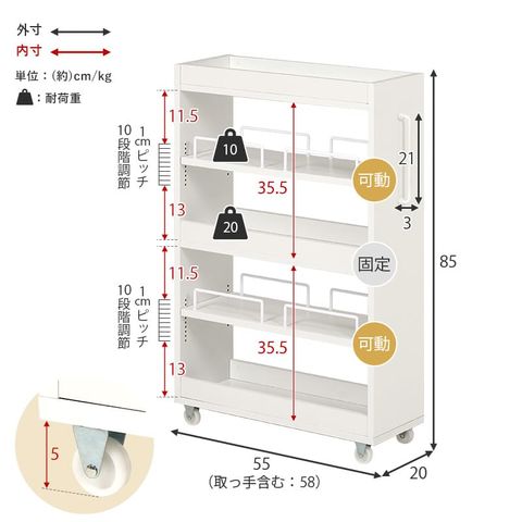 (約)幅20×奥行55(取手含む:58)×高さ85cm