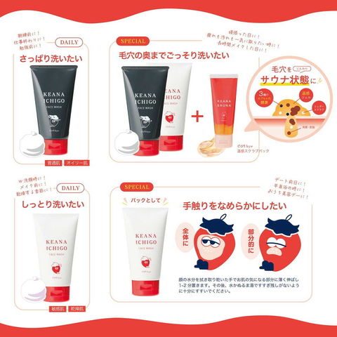 栃木産とちおとめエキス&アゼライン酸配合で、つるんとなめらか素肌へ。