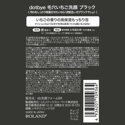 コスメテック、ローランド、洗顔、洗顔料、洗顔フォーム、dotbay、ドットバイ、毛穴いちご洗顔、いちご鼻、炭、炭洗顔、アゼライン酸、いちごの香り、スキンケア、クレンジング、毛穴、吸着