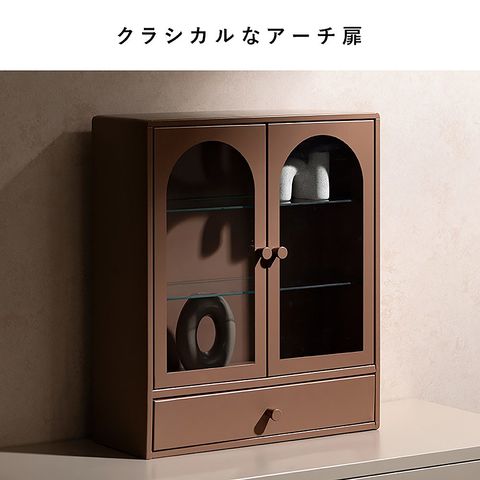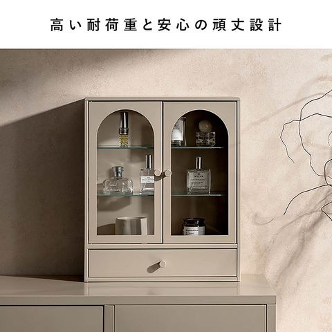 商品説明クラシカルなアーチとモダンな直線を融合させた、タイムレスな美しさ。見せる収納を楽しむディスプレイケース『Muun(ムーン)』。引き出し付きで、雑多な小物も隠してスマートに収納可能。光を透過するガラス扉が飾る物を引き立て、軽やかな抜け感を演出します。製品重量:3.9kg 組立式(約10分)