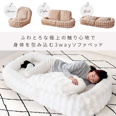 ふわとろ3wayソファベッド もこもこ座椅子 リクライニング ベッド ビッグサイズ おしゃれ 椅子 イス フロア チェアー 座イス ゆったり 座椅子 リクライニングチェア フロアチェア リビングチェア かわいい おうち時間 クッション 洗濯OK カバー