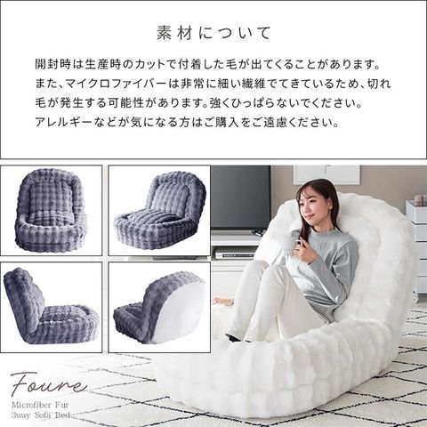 座椅子・ソファ・ベッドの3wayでお使いいただけて一日中過ごせる巣ごもりふわとろソファベッド『Foure(フール)』。とろけるような肌触りが気持ち良いマイクロファイバー生地とふかふかクッションがあなたを癒してくれます。