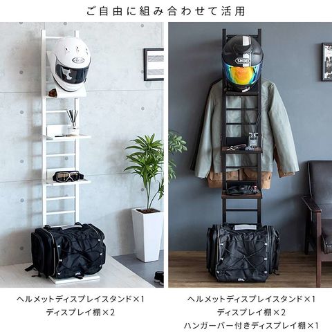 ディスプレイ棚 ハンガーバー付きディスプレイ棚 ヘルメットスタンド ヘルメットツリー バイク ヘルメット 自転車 バイカー ロードバイク ヘルメット 玄関収納 スチールラック スタンド ハンガーラック