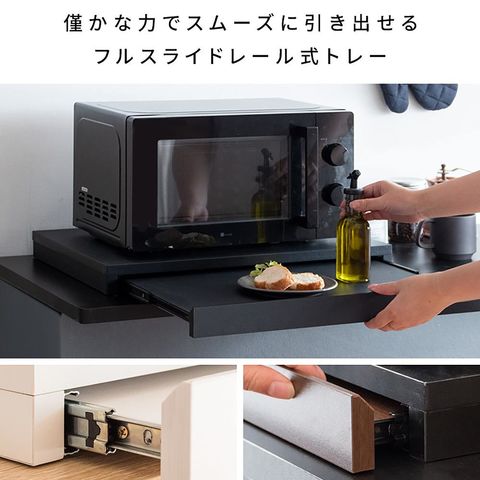 レンジ下トレー オーブンレンジ置き レンジラック キッチンキャビネット キッチンラック レンジボードスライドトレー スライドテーブル キッチン収納 引き出し 台所収納 炊飯器ラック 作業スペース キッチンテーブル 完成品 組立不要