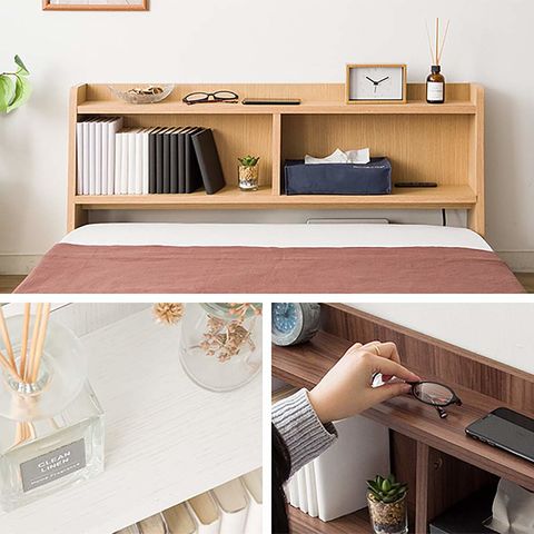 商品説明普段布団やマットレスをお使いの方、周りに物が散らかったりしていませんか?そんなベッド周りの物をスッキリまとめて収納できるのが後付け設置できるヘッドボード『MUUR(ムール)』。 どんなお部屋にも馴染みやすい、綺麗な木目調のシンプルなデザイン。奥行きわずか17cmなので圧迫感もなくお部屋も快適。収納棚にはコンセントも付いており充電ができたりスタンドライトも置けます。 ブラウン、ナチュラル、ホワイトの3カラー展開でお部屋やベッドの雰囲気、お好みでお選びいただけます。
