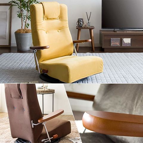 商品説明腰に優しい座面デザインが特徴のリクライニング回転座椅子『Diano(ディアーノ)』。こだわりの日本製で、理想的なS字を保つ背もたれ形状と、お尻が前滑りしないように工夫された座面形状が長時間でも快適な座り心地をキープします。 13段階リクライニングと5段階ヘッドリクライニングでテレビ鑑賞やお昼寝などお好みの角度に調節してゆったりおくつろぎいただけます。丈夫なポンプ式の木肘や360度の回転盤で立ち座りもラクラク。 カラーはイエローとグリーン、ブラウンの3カラーをご用意。お部屋の雰囲気やお好みでお選びいただけます。