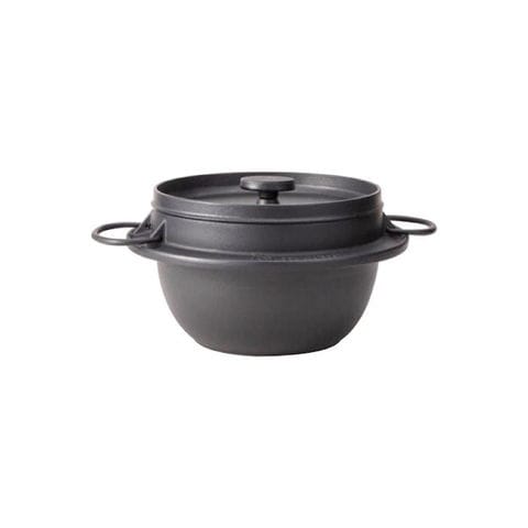 鋳肌が美しい岩鋳のキッチンウェア ごはんがふっくらと炊きあがり、パリッとしたお焦げも出来ます。アウトドアシーンではダッチオーブン代わりにも。鉄蓋が圧力をかけお料理を美味しく仕上げます。仕様:熱源:ガス・直火使用可