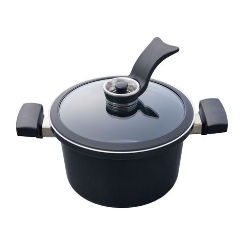 表面加工/内面:ふっ素樹脂塗膜加工 外面:焼付け塗装 材料/本体:アルミニウム合金 はり底:ステンレス鋼(クロム16%) ガラス蓋:強化ガラス