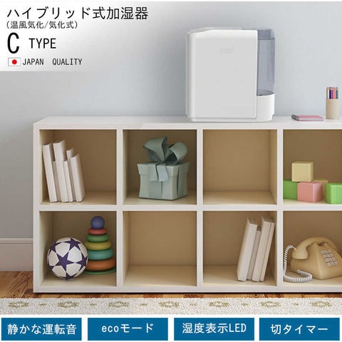 商品説明●目に見えない細かな水粒子で、空間を隅々まで加湿します。●気化式と温風気化式のハイブリッド式なので、乾燥している時は素早く加湿し、湿度が安定すると運転を抑え経済的な運転を行います。●50~70%の10%単位でお好みの湿度を設定できます。●湿度センサーにより、設定した湿度を保つように自動で運転状態をコントロールします。●eco運転で消費電力は11Wです。●電源(V):単相100●加湿能力(L/h):300●消費電力(W)(50/60Hz):161/161●タンク容量(L):2.5●色:ホワイト●幅(mm):322●奥行(mm):160●高さ(mm):325●電源コード長さ(m):1.8●加湿能力(ml/h):300●連続加湿時間(h):8.3●使用範囲目安:木造5畳、プレハブ8畳●標準消費電力料金(50Hz):4.9円/h●標準消費電力料金(60Hz):4.9円/h●加湿方式:気化ハイブリッド式●運転モード:標準/静音/eco●湿度設定:50%/60%/70%●現在湿度表示:LED表示●湿度センサー搭載●切タイマー:2時間/4時間●クリアタンク 質量3.1kg