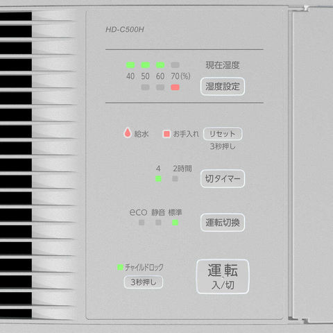 商品説明●目に見えない細かな水粒子で、空間を隅々まで加湿します。●気化式と温風気化式のハイブリッド式なので、乾燥している時は素早く加湿し、湿度が安定すると運転を抑え経済的な運転を行います。●50~70%の10%単位でお好みの湿度を設定できます。●湿度センサーにより、設定した湿度を保つように自動で運転状態をコントロールします。●eco運転で消費電力は11~12Wです。●電源(V):単相100●加湿能力(L/h):500●消費電力(W)(50/60Hz):163/163●タンク容量(L):4.0●色:マットグレー●幅(mm):375●奥行(mm):190●高さ(mm):375●電源コード長さ(m):2.0●加湿能力(ml/h):500●連続加湿時間(h):8.0●使用範囲目安:木造8.5畳、プレハブ14畳●標準消費電力料金(50Hz):5.0円/h●標準消費電力料金(60Hz):5.0円/h●加湿方式:気化ハイブリッド式●運転モード:標準/静音/eco●湿度設定:50%/60%/70%●現在湿度表示:LED表示●湿度センサー搭載●切タイマー:2時間/4時間●半透明白色タンク 質量4.5kg