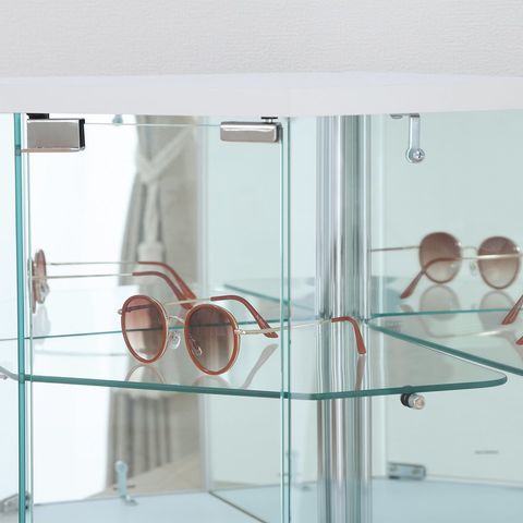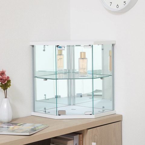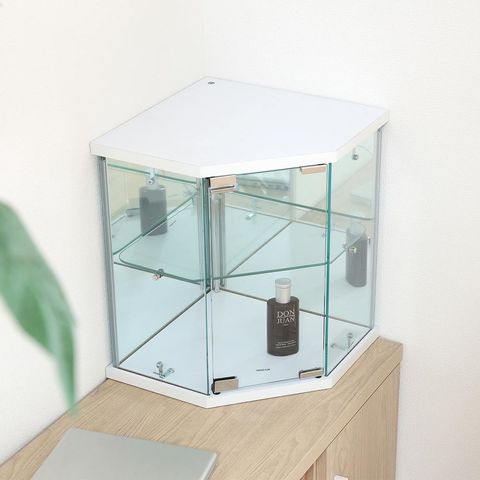 スペースを活用したコーナー型卓上ガラスコレクションケース