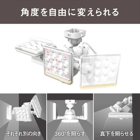 12W 3灯 フリーアーム式 LEDセンサーライト メーカー直送 ▼返品・キャンセル不可【他商品との同時購入不可】