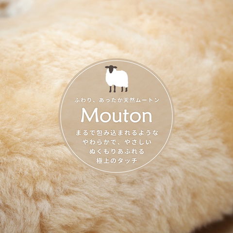 表面:羊毛皮100% 中材:ポリエステル100% 裏面:ポリエステル100%