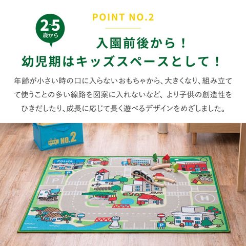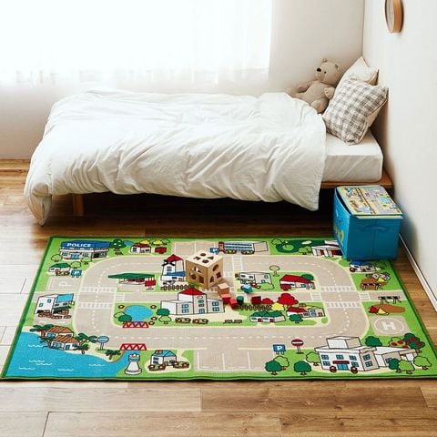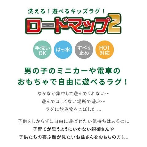 商品説明赤ちゃん期はプレイマット、幼児期はキッズコーナーマット・キッズラグ、小学生児童期は学習デスクマットで長く使える道路マップ柄ラグ。誕生日やクリスマスのプレゼントにも人気です。ループパイルはサラッとした感触で弾力性と耐久性があり、しっかりとした踏み心地。毛足がカットされていないため、ホコリやゴミが入り込みにくく、掃除がしやすいのもポイント。はっ水加工を施しているため飲みこぼしなどもサッと拭き取れシミになりにくく、汚れても手洗いOK。裏面は滑りにくい加工付き。ホットカーペットや床暖房に対応しており、オールシーズンお使いいただけます。