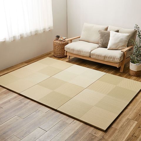 軽量で女性1人でも簡単に床に並べるだけで畳スペースが作れる置き畳です。ちょっとした隙間スペースを有効活用できるのでキッズ向けのプレイマットからシニアのお昼寝、お父さんお母さんのごろ寝スペースまで簡単に作れます。