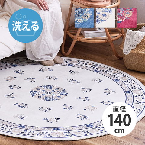 シノワズリデザインラグ ミュゲ 直径140cm ピンク メーカー直送▼返品・キャンセル不可【他商品との同時購入不可】