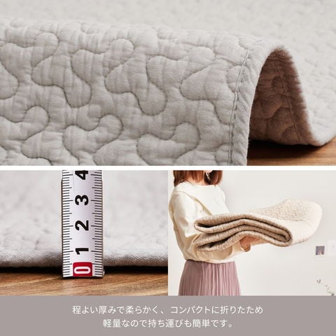 表面:綿100% 中綿:ポリエステル100% 裏面:ポリエステル100% すべり止めドット付き